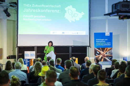 (Jena) Am 28. August 2025 fand in der Imaginata Jena die Jahreskonferenz von ThEx Zukunftswirtschaft statt. Unter dem Motto „Nachhaltigkeit erleben. Zukunft sichern.“ kamen rund 140 Teilnehmerinnen und Teilnehmer aus allen Regionen Thüringens zusammen, um Impulse zu erhalten, Erfahrungen auszutauschen und Perspektiven für nachhaltiges Wirtschaften zu diskutieren.